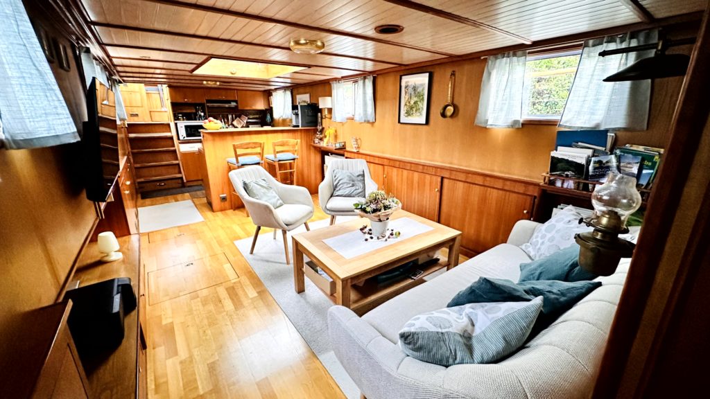 2000 wurde es in Belgien liebevoll zum Hausboot umgebaut.