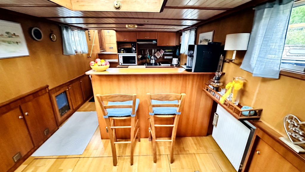 Seitdem hat es drei Kabinen, zwei Bäder mit Dusche, Waschbecken und WC. Es gibt eine U-Küche mit Gasherd, Spülmaschine, Kühl- und Gefrierschrank.