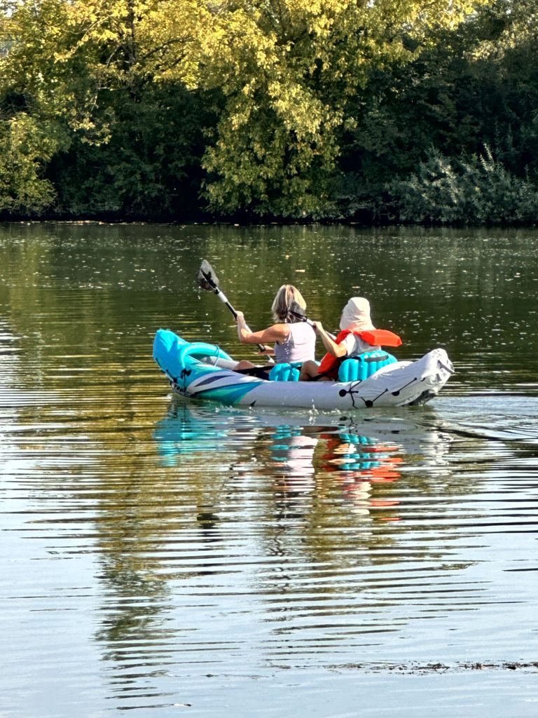 Nutze unser Kanu im ruhigen Kanal zwischen zwei Schleusen – perfekt für eine kleine Abwechslung vom Steuerstand.